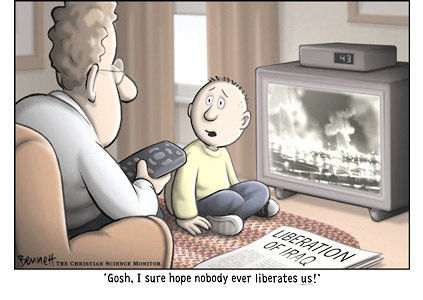 A few weeks ago, a couple foreign oil companies won the rights to the biggest oil field in Iraq, and the Iraqi government has been buying arms from European countries. So, we didn’t do it for oil or business, unless you count Haliburton contracts, GE infrastructure work, and kisses from the Saudis, who really, really hated Saddamy.
