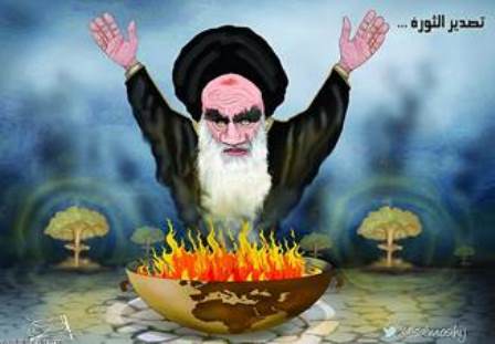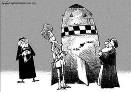 “Middle East policy” of lies results in an Iranian turban (Al-Hayat, London, April 8, 2015)“U.S., Iran Getting close: The Great Satan has become the Great Friend” (Al-Madina, Saudi Arabia, April 7, 2015)“Framework agreement between Iran and U.S.” Arab countries trapped. (Alaraby.co.uk, April 7, 2015)Exporting the [Iranian] revolution sets world on fire. (Al-Riyadh, Saudi Arabia, April 5, 2015)A message of love inscribed onto nuclear bomb? (Al-Raya, Qatar, April 6, 2015)“Iran after the nuclear agreement” (Mecca, Saudi Arabia, April 5, 2015)“Nuclear agreement between Iran and the superpowers” unleashes Iranian attack dog on “the Arab world” (Alaraby.co.uk, April 11, 2015)“Iran’s nuclear reactors”; gloves read “dammar” (destruction) and “hell” (Al-Madina, Saudi Arabia, April 11, 2015)