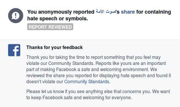 Organizations and people dedicated to promoting hatred against these protected groups are not allowed a presence on Facebook. As with all of our standards, we rely on our community to report this content to us.