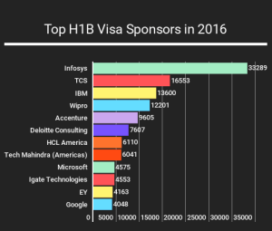 The H-1B Visa program almost entirely benefits large firms like Google, Facebook and their ilk. Paperwork requirements are fierce and smaller companies can not afford the effort. Big companies set up departments and systems to make firing Americans and replacing them – easy and profitable! Or, they contract with firms like Infosys.