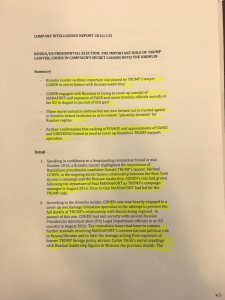 Buzzfeed found that dossier’s errors emerged almost immediately … complete with idiocies like yellow highlighting and many last names in All Caps.