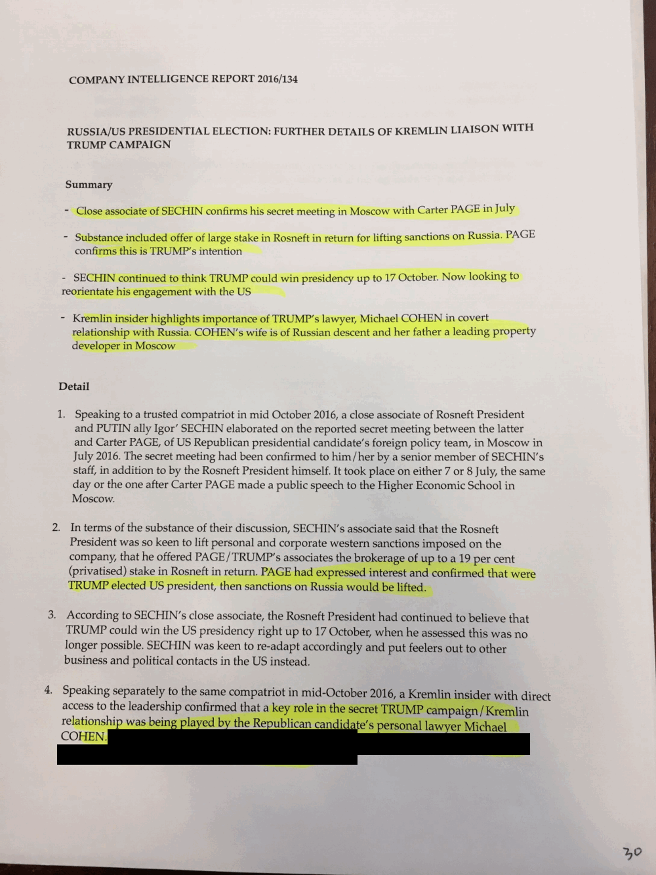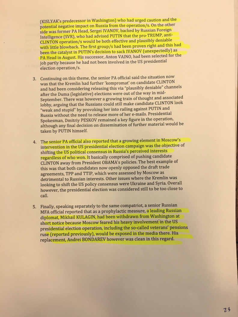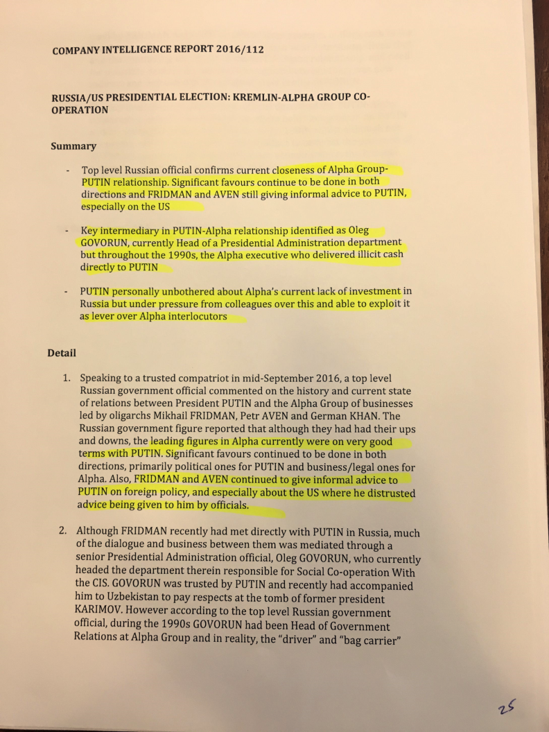 Buzzfeed found that dossier’s errors emerged almost immediately … complete with idiocies like yellow highlighting and many last names in All Caps.
