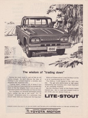 In 2018 Americans bought 11,786,069 new light trucks, and only 5,488,181 new passenger cars – proof that you can convince the public to drive trucks instead of cars through heavily advertising them and rarely mentioning autos.