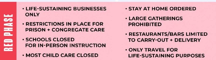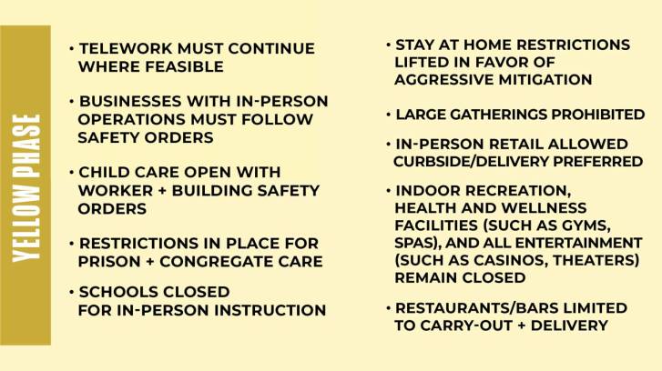 There is no word yet from Levine and Wolf on how we will enter the Green phase, which lifts nearly all restrictions, except CDC rules, also unannounced.