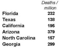 All the Southern/Western states are far below the Covid Corridor death rate. Florida, for example is one-seventh the NY or NJ rate, and Texas and North Carolina are less than one-tenth of NY or NJ deaths per million.