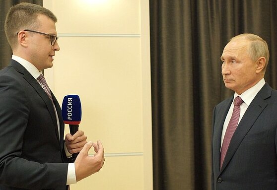 President Vladimir Putin answered questions from Pavel Zarubin, Rossiya TV channel journalist, co-host of the Moscow. Kremlin. Putin program.