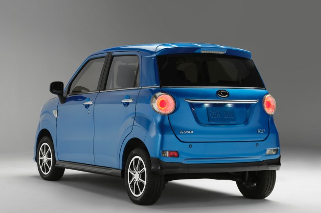 China’s Kandi K27 is a four-door, four-seater, all-electric car, that lists for $17,499 before the U.S. $7,500 tax credit. That brings its current cash price to $9,999 – after the 25% tariff paid to our government on cars imported from China.