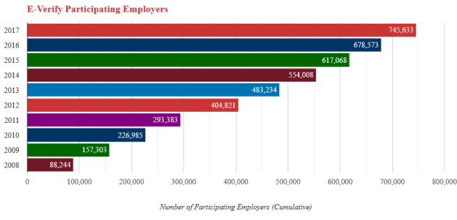 E-Verify, authorized by the Illegal Immigration Reform and Immigrant Responsibility Act of 1996 (IIRIRA), uses a web-based system, through which employers electronically, quickly confirm the employment eligibility of their employees. In the E-Verify process, according to its website, employers create cases based on information taken from an employee’s Form I-9, Employment Eligibility Verification: