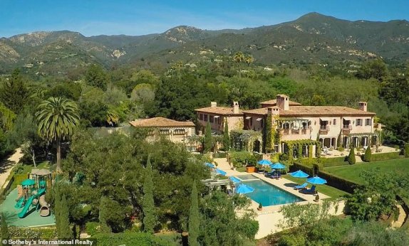 The entrance to the property opens onto a wide lane paved with hand-cut Santa Barbara Stone that leads through a grand archway of trees to the main residence, according to Zillow.