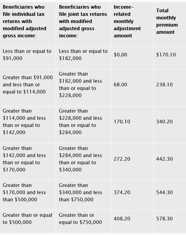 Suppose you are a widow or widower, living alone, and you need an emergency withdrawal from your IRA (that is always taxable). If that amount is more than $142,000, for example, your individual annual Medicare premium will be $5,307.
