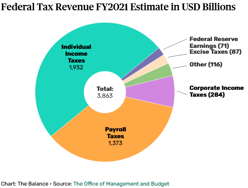 The U.S. government’s total revenue was estimated at $3.863 trillion for FY 2021. Some $200 billion was for disability insurance paid for by workers and their employers. Another $1,073 trillion went to retirees. Combined they accounted for the $1,373 trillion of FICA (payroll) taxes.